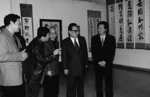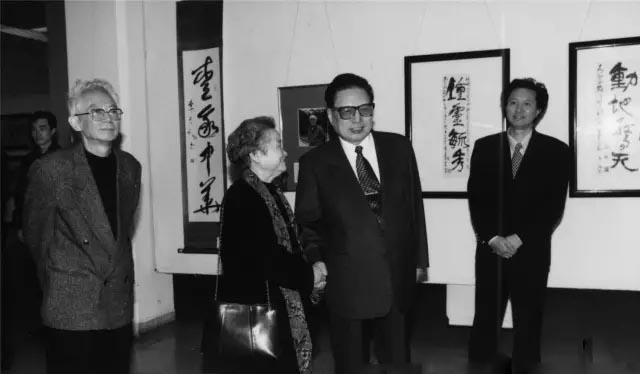 1998年11月,京华十一家遗作展现场。右二为乔石,右一为刘正成。 |
